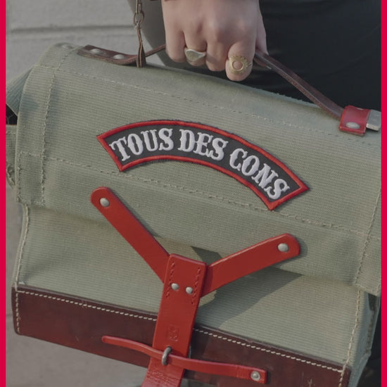 Sac à main 21X30 cm en toile et cuir. livré bride en cuir rouge escamotable. Sac customisé vintage numéroté limité à 200 exemplaires. Edition personnalisé avec votre prénom discrètement placé derrière le rabat avant. Produit rare.